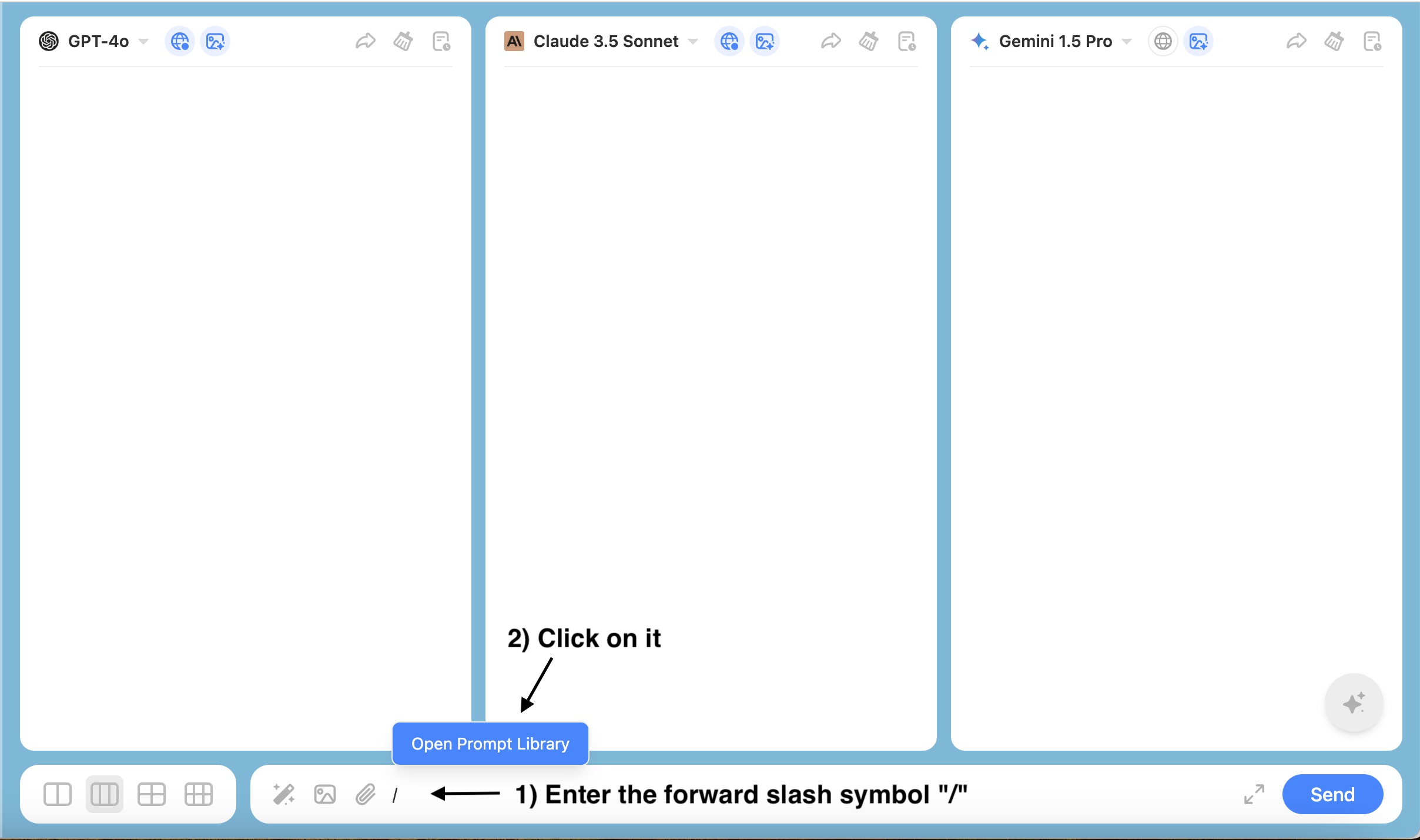 To access this service, you can either type a forward slash (/) in the chat box or click this icon: