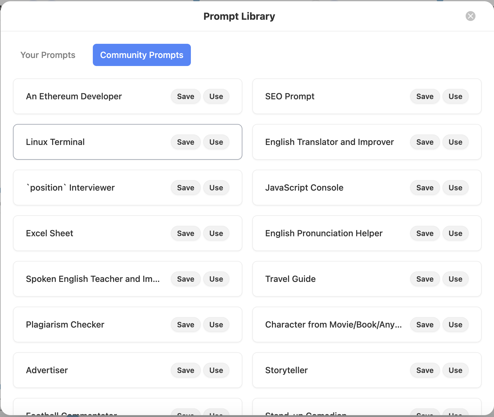 Skip to main contentChatHub offers a Prompt Library service where you can customize prompts according to your needs and preferences, saving and managing them in the Prompt Library for quick access. You can also select the prompts you need from the prompt community, helping you apply more suitable prompts in different scenarios, thereby increasing efficiency.